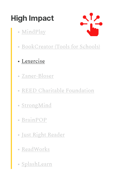 Being placed in the “High Impact” group reflects documented gains in reading skills for struggling readers, including students with dyslexia. Schools and families can look to Lexercise’s distinction as an indicator that our structured literacy program delivers meaningful improvement—not just short-term engagement, but sustained literacy progress.